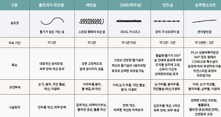 실리프팅은 특수하게 제작된 기가 있는 녹는실을 이용해 처진 피부를 끌어 올려주는 시술입니다. 레이저 리프팅으로 접근이 힘든 미세부위까지 섬세하게 디자인이 가능하며 개인의 얼굴 모양에 따라 실의 종류, 실의 개수, 디자인이 달라져야 하기 때문에 피부과 전문의의 진단과 맞춤 디자인이 필수적입니다.